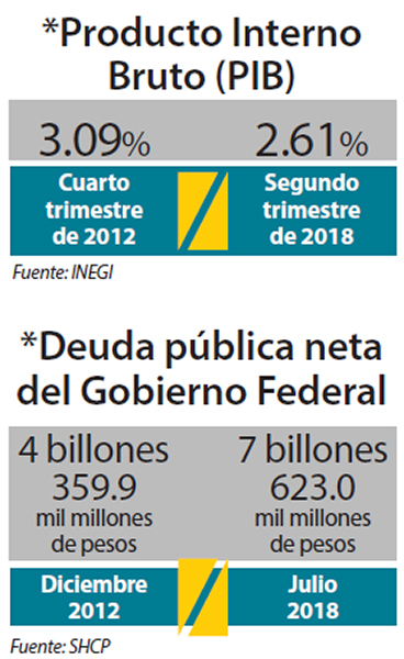 A agosto de 2018, la deuda neta del Gobierno Federal alcanzó los 7 billones 718.5 mil millones de pesos, cantidad superior a los 3 billones 358.60 mil millones de pesos que se tenía en 2012 (según datos de la Secretaría de Hacienda y Crédito Público), como resultado de la disminución del precio del crudo, que bajó de cien dólares aproximadamente, a alrededor de 20 dólares por barril, y significó una reducción en el ingreso, que no estuvo acompañada de recortes en el gasto público, explicó Roberto Valero, del Centro de Estudios Económicos de Baja California