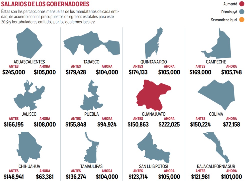 Las entidades donde hubo alternancia en los gobiernos también tuvieron modificaciones en los sueldos de los mandatarios.