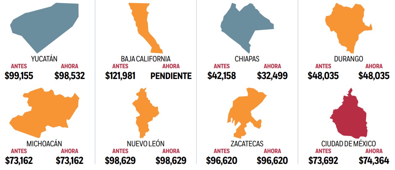 En el caso de Baja California, el sueldo está en pendiente, ya que el presupuesto de la entidad para este año se muestra en revisión.