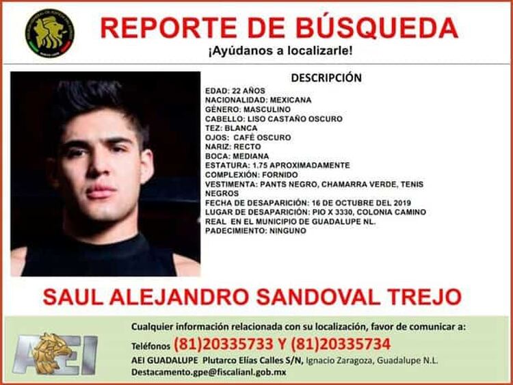La ficha de Sandoval Trejo apareció un día después, el 22 de octubre (Foto: Fiscalía de Nuevo León)