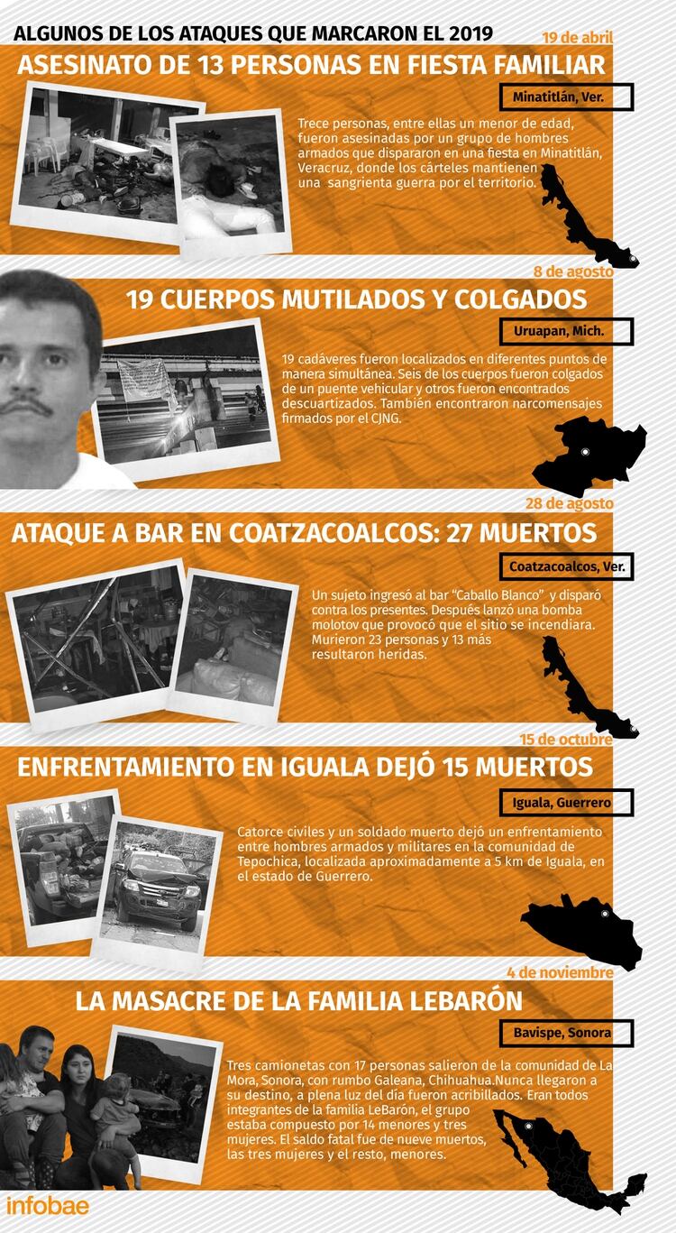 Infobae México realizó un recuento de los hechos más atroces cometidos por estos grupos delincuenciales en este año que termina y que también es el primero del gobierno de Andrés Manuel López Obrador.
