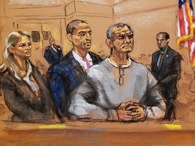 Genaro García Luna aparece en la corte de Nueva York acompañado de los abogados Erin Reid y Cesar de Castro, el 3 de enero de 2020 (Foto: Reuters)