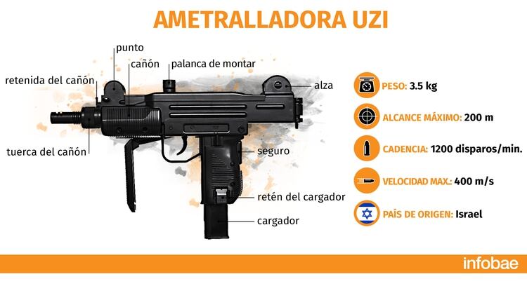 Ametralladora Uzi. Es un subfusil de origen israelí, diseñado y fabricado por Israel Milutary Industries. Según sus características, el arma pertenece a aquella generación que empezó a compactar y aligerar el peso de los subfusiles. Las versiones más pequeñas y novedosas son consideradas como automáticas.