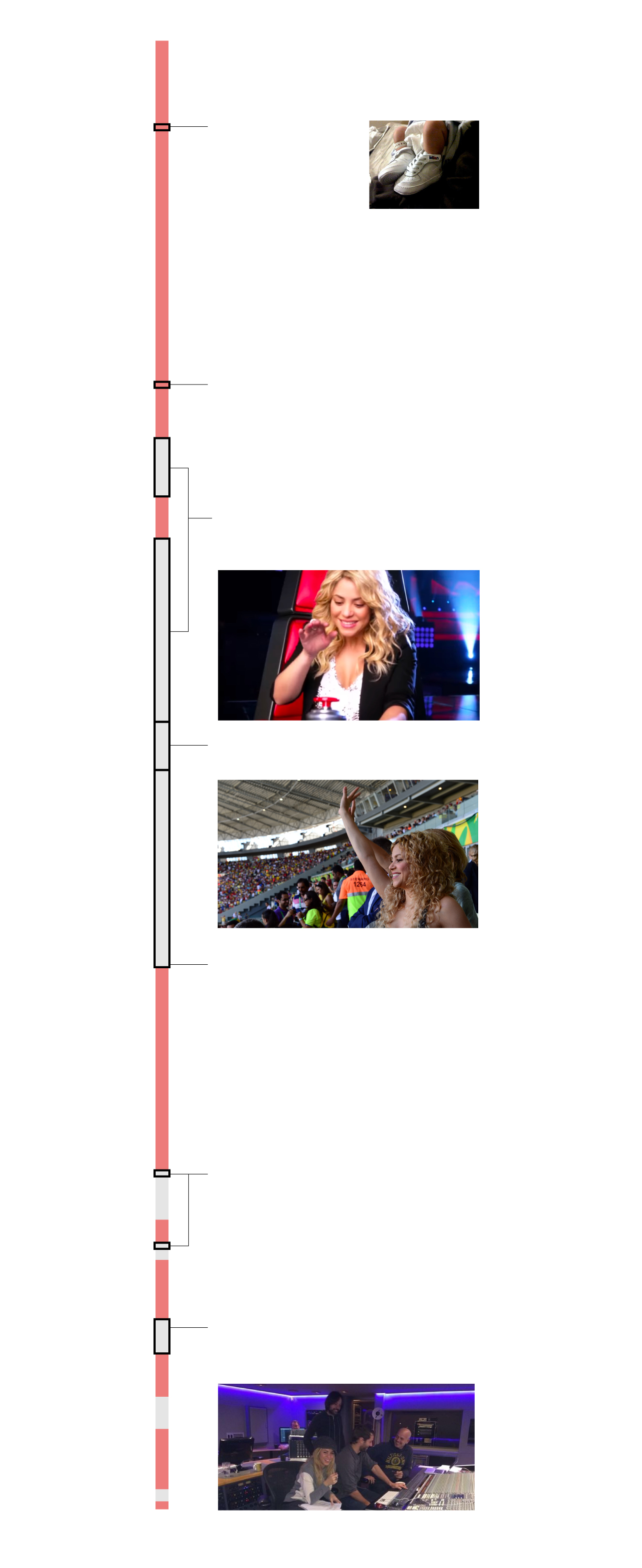 El resultado de esa labor detectivesca es un calendario detallado de la vida de Shakira, que agota con solo verlo. Hacienda trata de demostrar que su campamento base fue siempre Barcelona, por más que no dejase de viajar. Sirva 2012 como ejemplo. Shakira acude a la gala del balón de oro, a los NRJ Awards en Cannes, graba un spot para Puig en Sudáfrica, se escapa a Italia con Piqué, va a California a grabar el videoclip Addicted to you, asiste a la cumbre de las Américas en Colombia, visita a su familia en Miami, acompaña a la Eurocopa de Polonia al defensa dele Barça, graba las audiciones de The Voice en Estados Unidos y hasta da un concierto en Azerbaiyán. Pasa un agosto lejos de las cámaras en casa de sus suegros, en Cabrils (Barcelona): está embarazada y el 22 de enero de 2013 dará a luz a su primer hijo.