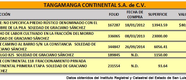 Independientemente de los bienes a nombre de Tangamanga Continental S.A. de C.V., ésta empresa ha sido empleada por la familia Gallardo para construir fraccionamientos como la “Privada Continental Residencial” que se localiza sobre la calle camino a San José del Barro en Soledad de Graciano Sánchez.
